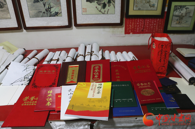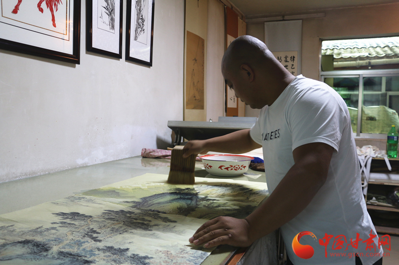在相距不远的滩歌镇下街村,记者见到了另一位被当地人做为榜样的残疾人郭建良。郭建良是武山县滩歌镇残联专职委员,也是天水市中青年书法家协会会员、天水市书法协会会员。他自幼爱好文学艺术,但因患股骨头坏死疾病而致残,为了不给家人增加负担,他开始自学书画装裱技术,钻研学习名家书画,1997年,小有成就的他创办了滩歌镇“威远画廊”,专营书画装裱及书画创作业务。2010年6月获得第四届全省残疾人书法绘画摄影大赛二等奖,书法作品在2007年4月出版《甘肃风采》总第64期上刊载。